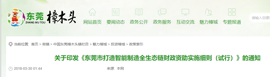 《東莞市打造智能制造全生態(tài)鏈財(cái)政資助實(shí)施細(xì)則(試行)》正式印發(fā)。對(duì)購(gòu)買先進(jìn)設(shè)備自動(dòng)化改造的企業(yè),資助標(biāo)準(zhǔn)提高至設(shè)備投入額的25%到50%以上,單個(gè)項(xiàng)目最高資助500萬元。