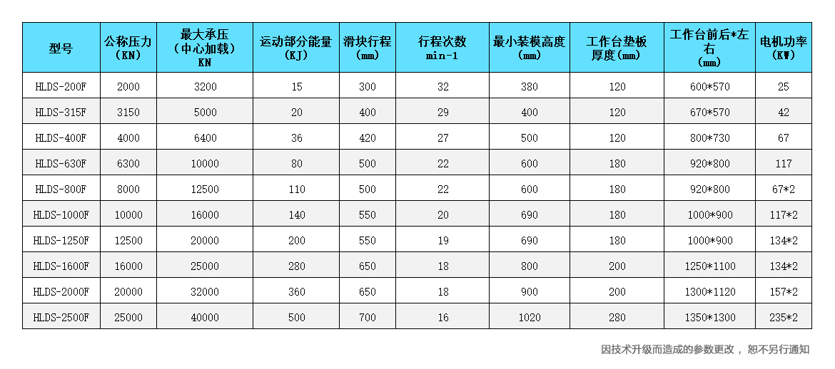 HLDS系列電動螺旋壓力機主要技術參數
